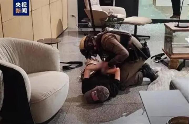 抓捕嫌犯现场画面(图源:央视新闻客户端)
