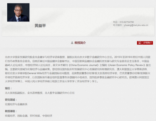 公开资料显示,黄益平,现任北大国发院副院长、金光讲席教授、北大数字金融研究中心主任。研究领域为宏观经济与金融体系。