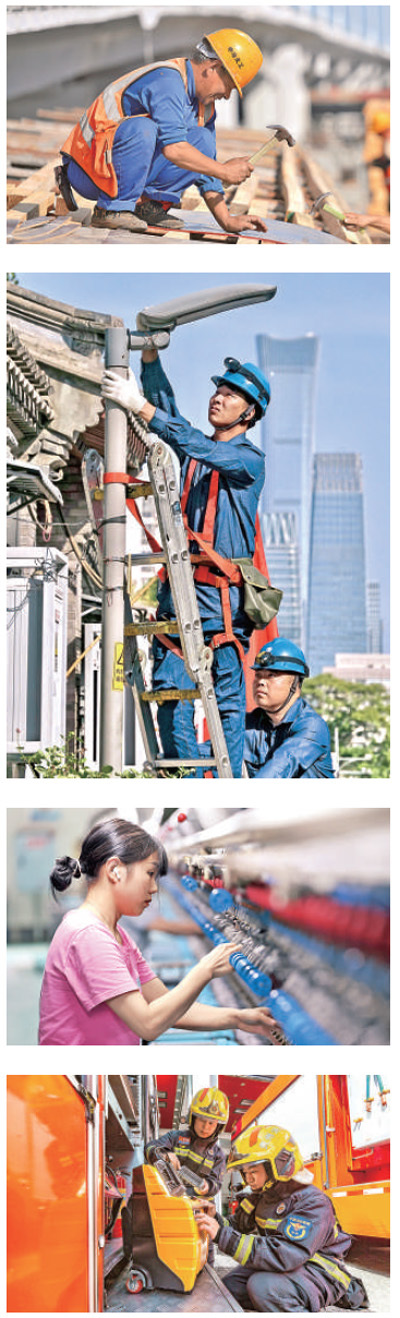 国庆假期,劳动者坚守岗位、奋战一线。照片自上而下依次为: