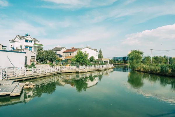 骑行20分钟就可以到达陡门口,这里生活气息浓厚,你可以把车停下,沿着水边木栈道走进村里,水岸、护坡、农家小院,江南水乡的风情尽在眼前。