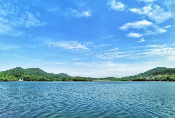 佘村北面有一横山水库,名曰天云湖。近看湖水清澈波光闪跃、远看群山蜿蜒苍翠巍然,是绝佳的拍照打卡地。