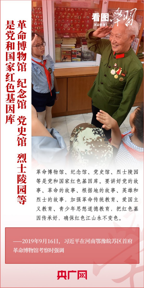 从井冈山“中国革命的摇篮”到大别山中鄂豫皖苏区首府革命博物馆,从西柏坡中共中央旧址到延安宝塔山下的革命旧址……党的十八大以来,习近平总书记在地方考察调研时多次到访当地革命纪念地,瞻仰革命历史纪念场所,强调要用好红色资源,赓续红色血脉,确保红色江山后继有人、代代相传。一起来学习!