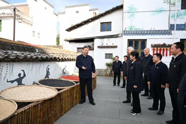 10月11日,习近平总书记在江西省上饶市考察调研。他来到上饶市婺源县秋口镇王村石门自然村,了解湿地公园生态保护、推进乡村振兴等情况。