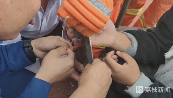 10月12日中午,盐城消防接报:位于阜宁县罗桥中学有学生手指被卡住无法取出,接到报警后当地消防救援人员立即赶赴现场开展救援。