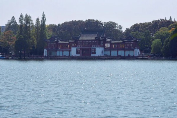 举目远望,在秋日阳光的照耀下,湖对岸那古朴的亭台楼阁,更显得庄重典雅,与湖光山色交相辉映,如诗如画。