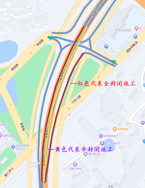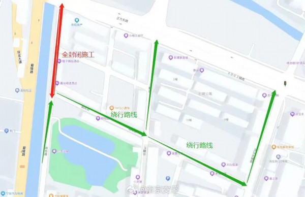 因地铁九号线施工需要,江东北路汉中门大街路口南口机动车禁止左转延期至2023年12月10日。禁左后,请由水西门大街—燕山路—汉中门大街绕行。