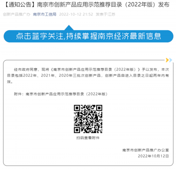 我市聚焦创新型产业体系,遴选一批优质创新成果纳入《南京市创新产品应用示范推荐目录》,每年提出发布1000个应用场景清单,为专精特新中小企业各类创新主体提供广泛合作机遇。同时,打造“宁创新品”活动品牌,以每月“场景观摩+产品推介”的组合拳,助推创新成果深度对接市场,更加贴合供需实际。