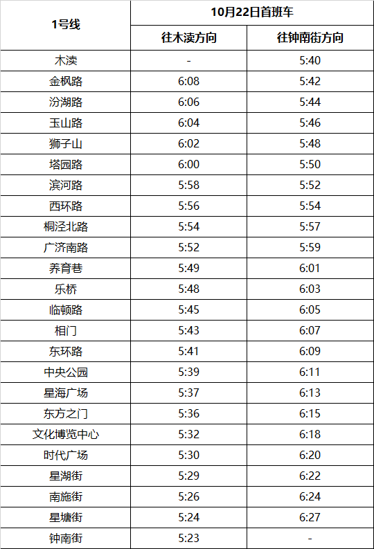 一、提前1号线往木渎方向首班车时间