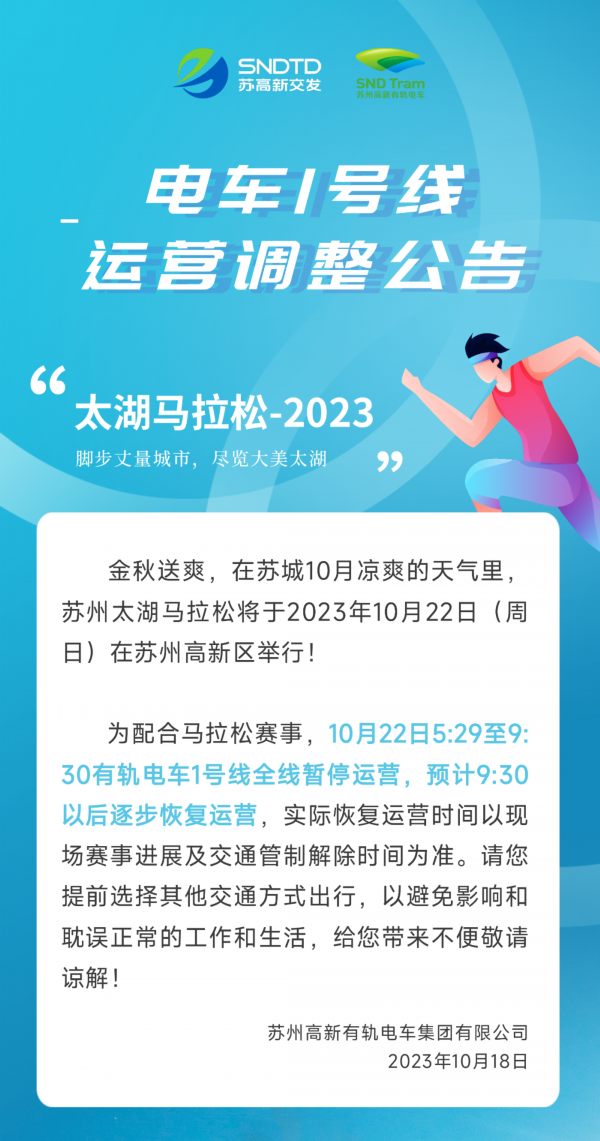 为做好10月22日2023苏州太湖马拉松的运输保障工作,苏州轨道交通经与苏州太湖马拉松组委会对接,制定当天运营保障措施如下: