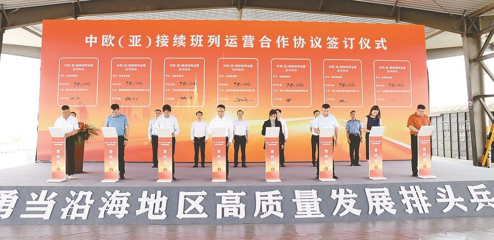 “中欧(亚)班列‘盐城号’首发开通!”6月16日上午9时18分,随着一声鸣笛,中欧(亚)接续班列“盐城号”正式开行,盐城至欧(亚)国家国际货运铁路“大动脉”正全面打通,货物能以更为便捷的运销方式直通欧洲市场。
