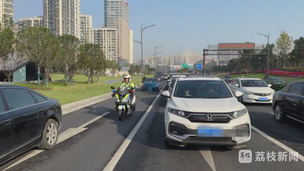 10月16日早高峰,市民阮先生报警求助,称自己孕晚期的妻子在家突然羊水破了,临产在即,急要去南京市妇幼保健医院。接警后,机动大队铁骑郭豪在报警车辆必经路段等待,确认过求助车辆特征后,立刻拉响警报为求助车开道。