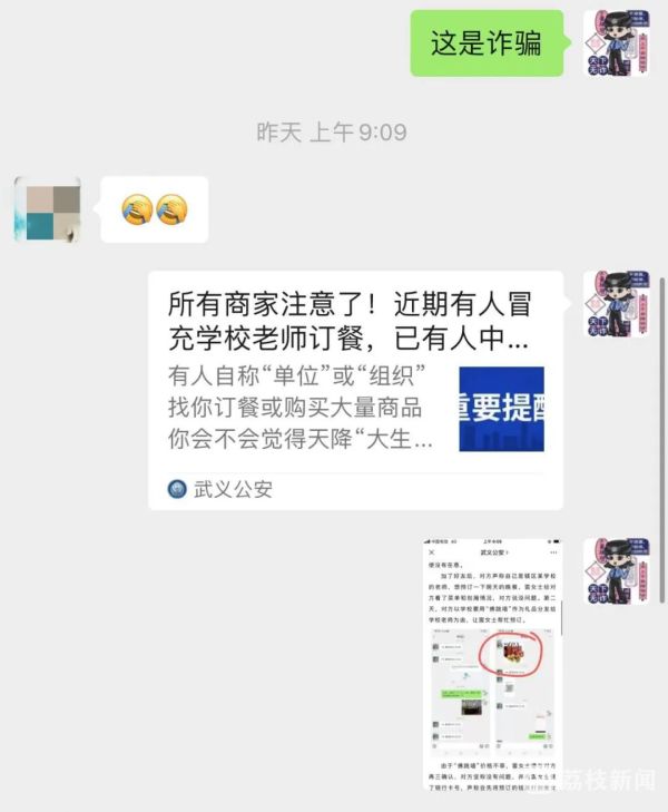 警方分析套路:1、骗子以订购餐饮为诱饵,借助网络平台、短信、微信等联系餐饮业老板。
