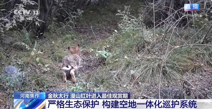 总台记者 王涛:这里也是太行山猕猴国家级自然保护区的一部分,森林覆盖率高,生物丰富多样。为了加强生态保护,当地除了每天派人路面巡查外,还通过卫星系统对保护区进行监测,工作人员在这里架设了52台智能红外相机,6套视频监控系统,形成了天空地一体化巡护系统。