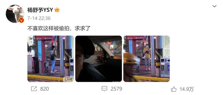 今年7月,杨舒予因为不堪其扰,选择在个人账号上直言:不喜欢这样被偷拍,求求了。