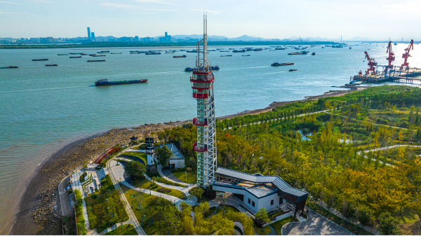 老塔(六圩灯塔)是1986年建的,新塔是2006年建的,以这两个塔为文化地标,围绕它们打造了灯塔公园。公园除了一些景观绿化之外,还建了一座亭子、一座红桥,以及一个航标文化展示厅。