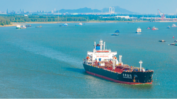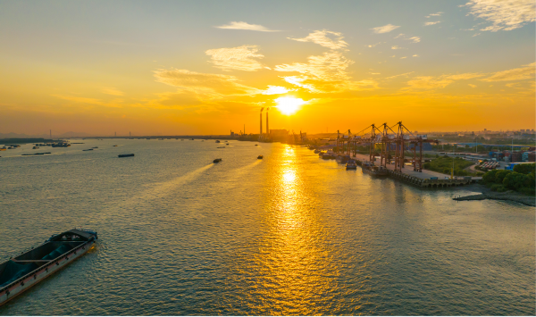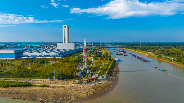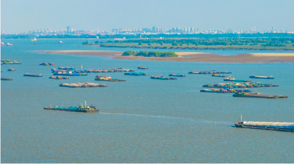 来到这里,远远就能看到高耸的六圩灯塔,和江面上长长的船队。