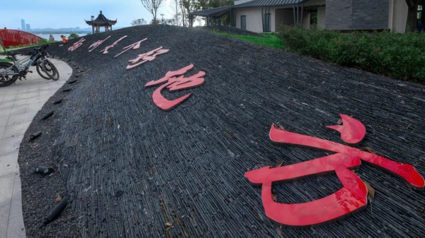 公园内的红桥、古亭、绿树等景致,让大江大河更显大气,不少居民在公园内散步露营,偷得浮生半日闲。