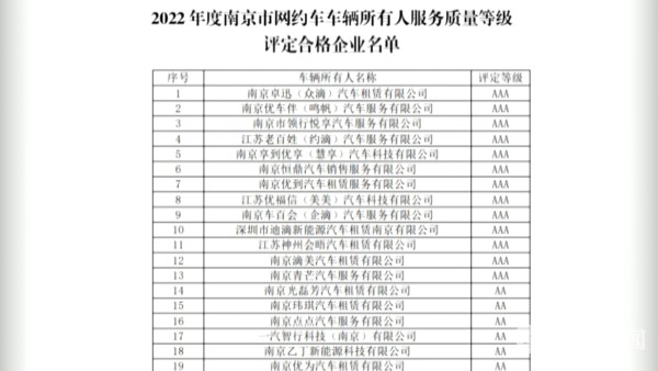 如果想开网约车,驾驶员应该选择什么样的租赁公司呢?交通部门同时公布了2022年度南京市网约车车辆所有人服务质量等级评定合格企业名单。