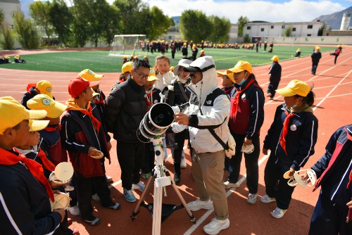 曲水县聂当乡中心小学向庆玲老师说:“这是学校第一次有如此规模的科普活动。相较于内地,我们的教学条件是有差距的,更不要提科学实践活动了。但是今天孩子们真真切切地接触到了四年级科学课涉及到的日晷,六年级科学课涉及到的航天。对于我们老师来讲,知识面也得到了拓宽。”