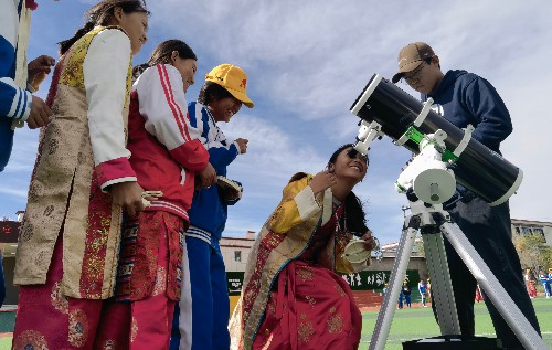 拉萨被称为日光之城,在离太阳最近的地方带学生们观测太阳黑子,学习日晷是再适合不过了。