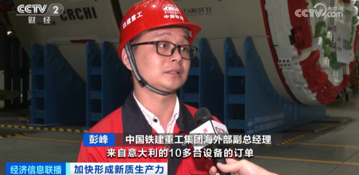 中国铁建重工集团海外部副总经理 彭峰:从今年年初开始,我们陆续收到来自意大利10多台设备的订单。目前设备已出口到全球40多个国家和地区,比如泰国、越南、新加坡、斯里兰卡等。以前这么高端的设备,我们中国是引进来;从最近十年开始,我们大力发展中国自己的高端装备制造,所以我们的设备越来越多地走出国门。