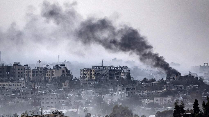 当地时间2023年10月29日,巴以冲突持续,以色列轰炸加沙地带后,浓烟滚滚。视觉中国 图