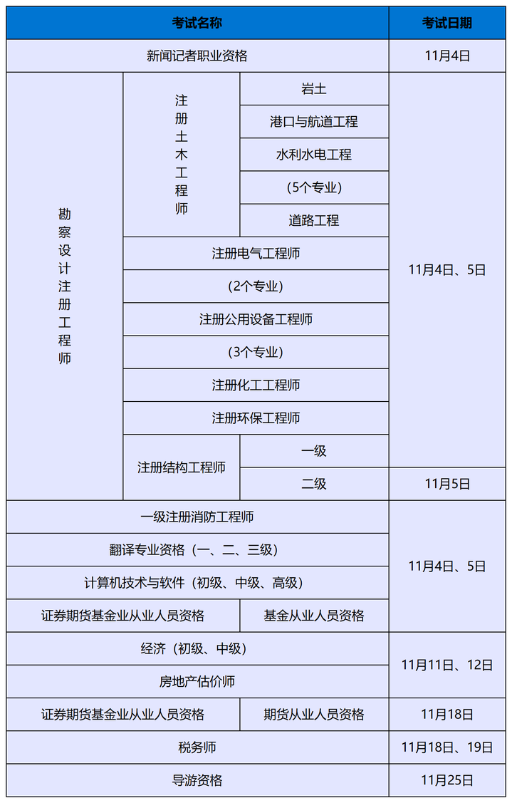 要考证的小伙伴看过来11月专业技术人员职业资格考试时间表来啦别错过哦祝大家都能取得理想的成绩!