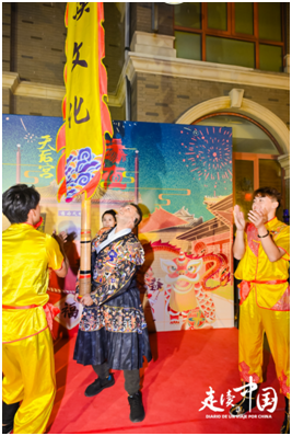 看到非遗文化传承者们举着近9米高的中幡,灵巧地交替挪移,巴西记者朱利安诺·迪普也跃跃欲试。
