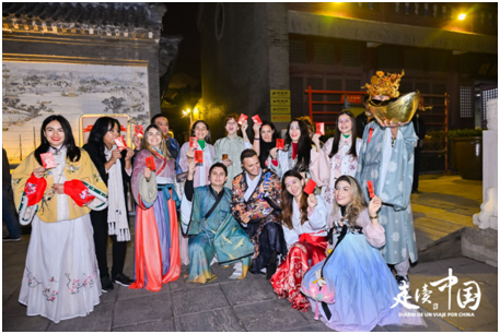外媒记者穿汉服夜游天津民俗博物馆