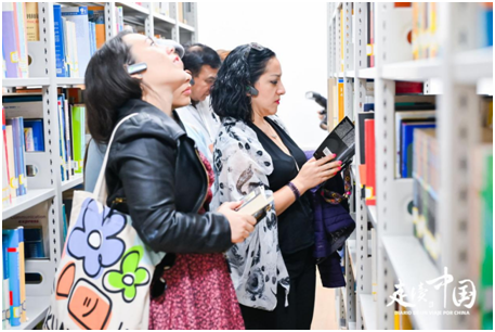 外媒记者在南开外院学术资源中心查阅书籍