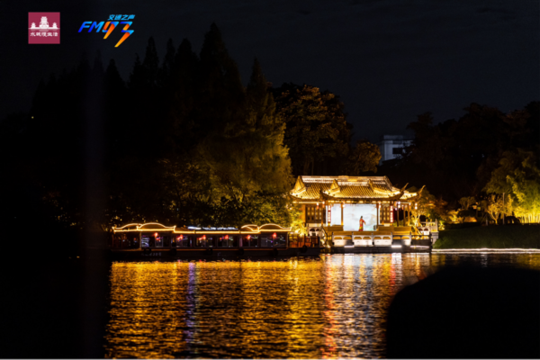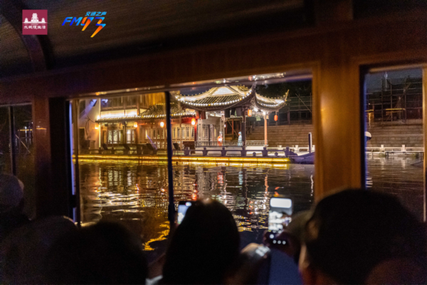 夜晚,自驾游团来到凤城河,体验凤城河夜游。