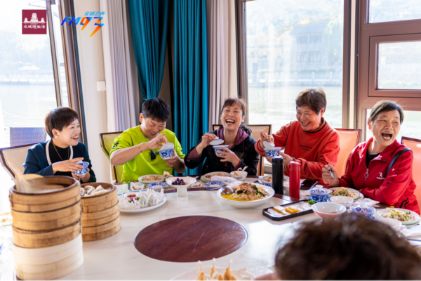 吃早茶大致分为五道:第一道喝茶水;第二道应时小菜(浇头);第三道烫干丝;第四道吃点心;第五道鱼汤面。团队车友们纷纷表示:“太好吃了,值得点赞!”