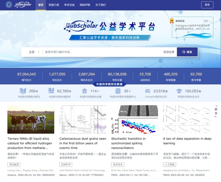 今天(11月1日),由中国科学院文献情报中心、中国科学院计算机网络信息中心、科学出版社等单位联合建设的PubScholar公益学术平台正式对社会公众开放。该平台提供公益性的学术文献服务,为有相关需求的机构、社会公众等提供了内容丰富的学术资源。