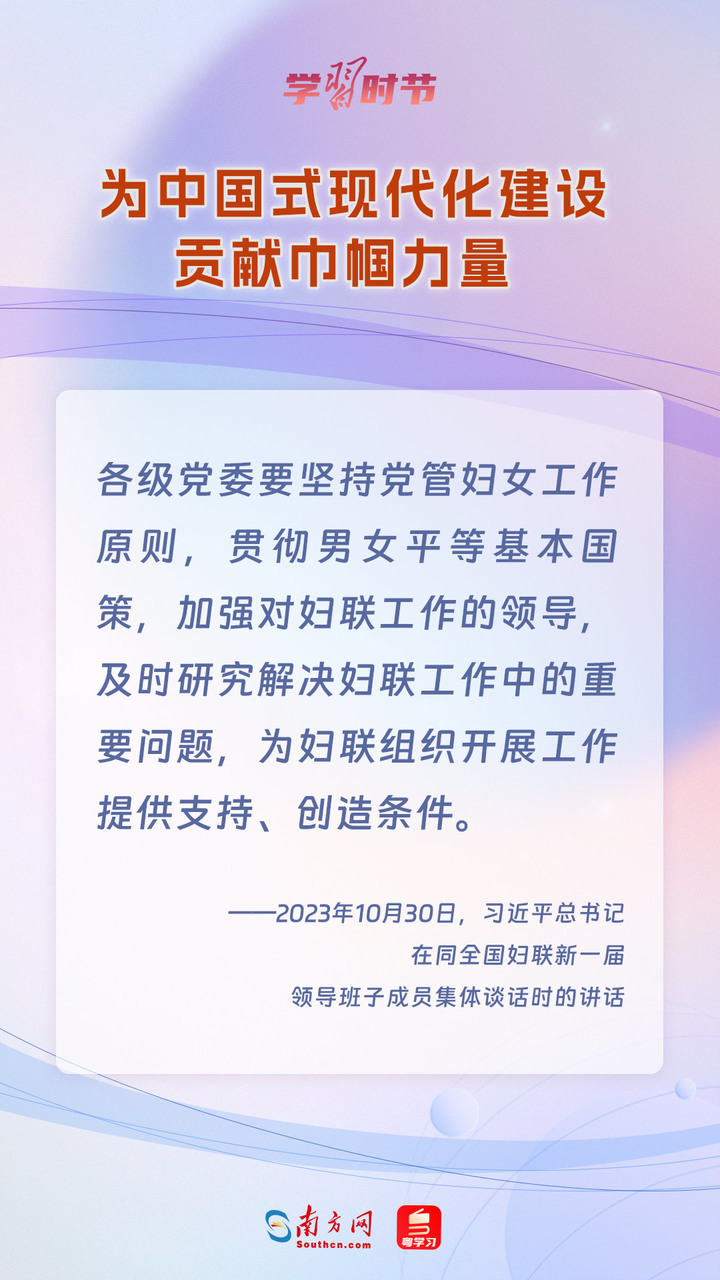 10月30日,中共中央总书记、国家主席、中央军委主席习近平在中南海同全国妇联新一届领导班子成员集体谈话并发表重要讲话,让我们一同学习。