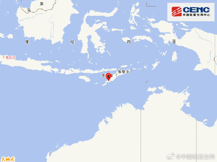 中国地震台网正式测定:11月02日05时04分,在帝汶岛地区(南纬10.2度,东经123.8度)发生6.1级地震,震源深度20公里。