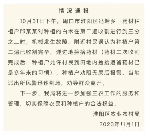 10月31日,河南省周口市淮阳区冯塘乡一中药种植园在进行药材收割时,遭附近村民哄抢,损失20万元,此事引发热议。11月1日,当地通报称,村民误认为已收割完毕,遂进地捡拾药材。对此,江苏新闻广播《高爽说法》节目特邀嘉宾、江苏中虑律师事务所左迎春律师认为,从网传视频和目前新闻报道内容看,误会的说法站不住脚。如果是哄抢,村民轻则会受治安处罚,重则会因聚众哄抢罪而承担刑事责任。