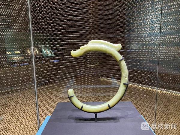 在新石器时代早期,位于黑龙江的小南山藏着改写中华文明发展史的“秘密”,在考古发掘中出土了近200件玉器。在第一章“玉生华夏”中,就展出了一块古老的玉玦,呈环形、有缺口,是迄今为止发现的最早的玉器类型之一。策展人左骏说:“它作为耳部装饰使用,因而有些专家认为中国的玉器是从头部装饰开始的。玉玦的制作工艺非常高超,形态规整,钻孔圆润,说明它的技艺成熟,器物造型也非常成熟。”