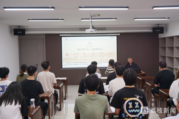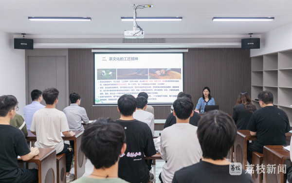有着30年制茶经验的江苏省乡土人才大师工作室负责人许群峰,以《宜兴红茶历史发展和生产要点》为题为同学们讲授“工匠大师课”,他讲解了宜兴茶产业发展历史、茶园生态环境和肥水管理关键技术,并结合丹凝(花果香型红茶)生产,介绍了宜兴红茶的品类和加工工艺创新,他说:“要想做出好茶,就必须不断研究,摊晾、萎凋、揉捻、发酵、干燥,这些都不是一个简单而重复的过程,每一道程序都会随着时间、温度的变化而发生质的变化,只有把制茶技艺研究透了,才能做出好茶。”