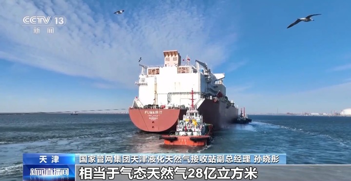 国家管网集团天津液化天然气接收站副总经理 孙晓彤:今冬明春的保供季,预计接卸31船液化天然气,相当于气态天然气28亿立方米,可满足4600万户家庭保供季的民生用气需求,通过新投产管线实现与周边地区骨干管网的互联互通,进一步增强地区海上液化天然气资源保供能力。
