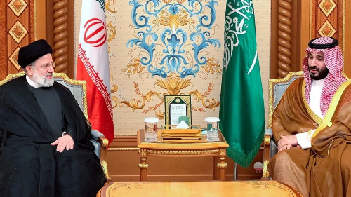 当地时间11月11日下午,沙特阿拉伯王储穆罕默德·本·萨勒曼在阿拉伯-伊斯兰领导人联合特别峰会期间会见了伊朗总统易卜拉欣·莱希。这次会晤是两国领导人今年恢复外交关系以来的首次会面。