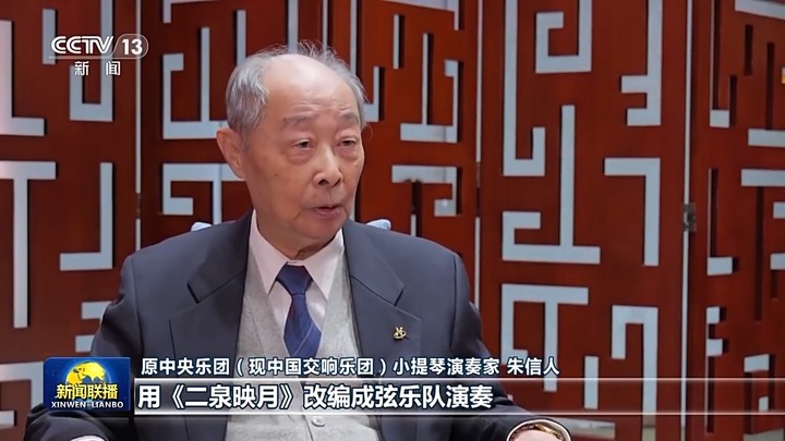 原中央乐团(现中国交响乐团)小提琴演奏家朱信人:1973年我们是用《二泉映月》改编成弦乐队演奏,他们听了以后非常喜欢这首作品,当场就要总谱,他们准备演。他们也看了我们的乐器,有的当场就把自己的小号送给我们了。音乐大家都是融合的。