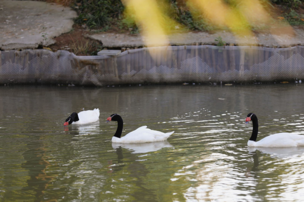在水慢城天鹅湖,湖水波光粼粼,犹如一幅天然画卷,水面上的小天鹅、赤麻鸭、大雁……在湖水的倒影下自由游动,诉说着季节的灵动。