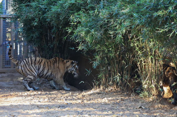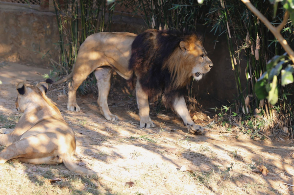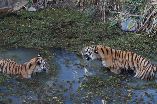 猛兽区中大“猫”们,不再躲避正午直射的日光,走出阴凉,嬉戏玩耍,沐浴在暖阳中。