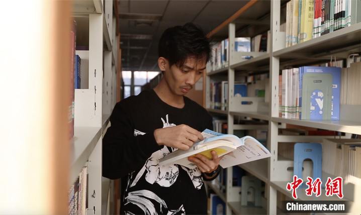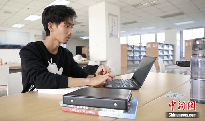 2023年10月,就读于兰州交通大学的留学生陈君其正在图书馆里自习。高莹 摄