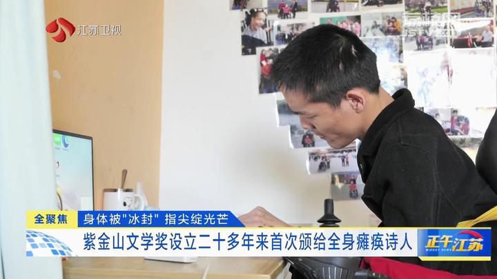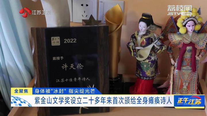 日前,江苏省第八届紫金山文学奖在南京揭晓。获奖作家中有一位特殊青年,他全身瘫痪,只有1根手指能动,他就是本次获文学新人奖的常州作家许天伦。紫金山文学奖是江苏最权威文学奖项,设立二十多年来,这是第一次颁发给全身瘫痪患者。