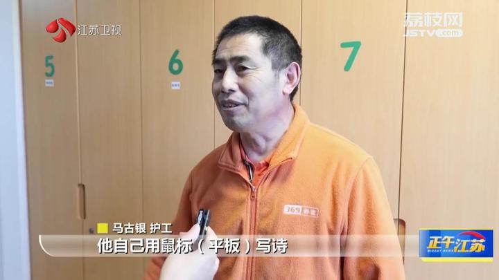 护工马古银告诉记者,许天伦空下来的时候就让大家帮忙打开电脑,他自己用平板写诗。有时他身体会容易歪到一边,都要靠护工帮忙调整姿势。