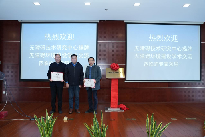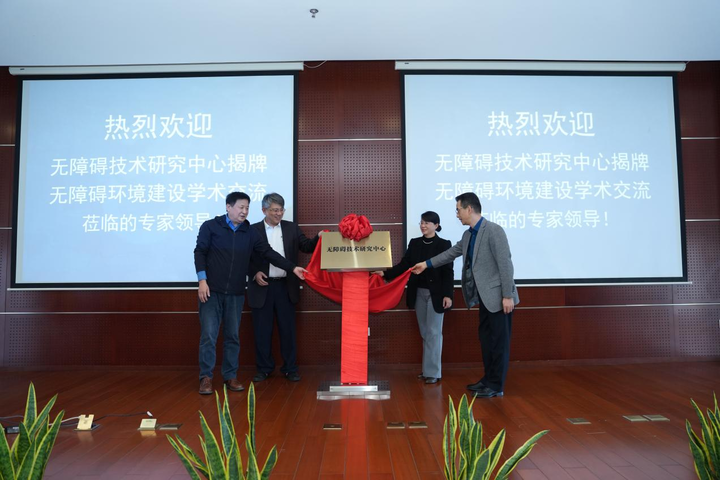 焦勇、乐松、顾家慧、卢中强为“无障碍技术研究中心”进行揭牌。