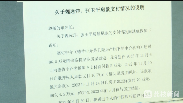 在居间过程中,李强并未告知金帅,其与王建之间以 86.5 万元总价 " 锁定 " 房屋的约定。几天后,金帅由于资金困难只支付购房款 35 万元及中介费 1 万元。镇江市丹徒区人民法院民一庭员额法官朱琳介绍:“ 为促成此次交易,李强与金帅协商,由李强为金帅先行垫付剩余购房款。同日,金帅也向李强出具一份借条,载明因购买房屋需全款支付,李强出借给金帅 65 万元,金帅应于 2022 年 11 月 25 日前归还借款。”