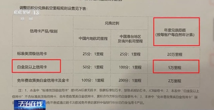郝先生说,除了兑换比例的变化让积分贬值,当时这家银行信用卡中心的公告中还规定,大幅降低了白金及以上信用卡客户的年度兑换限额。