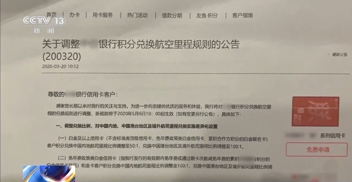 用积分顺利兑换了里程,郝先生这才放了心。然而没过多久,事情却出现了波折。2020年3月20日,这家银行信用卡中心发布了一则公告,对航空里程的积分兑换规则进行了调整,并注明新规将于同年5月6日生效。